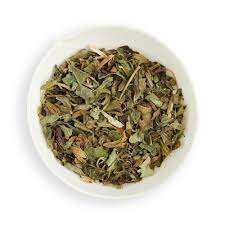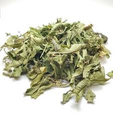 Appearance : Small, heart-shaped green leaves with serrated edges. Dried leaves appear olive-green to light green.
